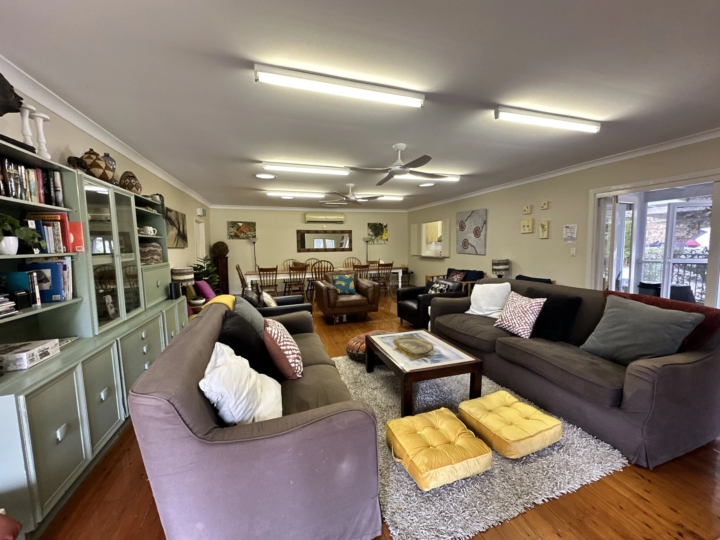 Our Main Hall seats 20+ people comfortably - perfect for meetings, seminars and discussions. The Hall also has a screened in veranda with large table and seating for separate eating or break-out opportunities.